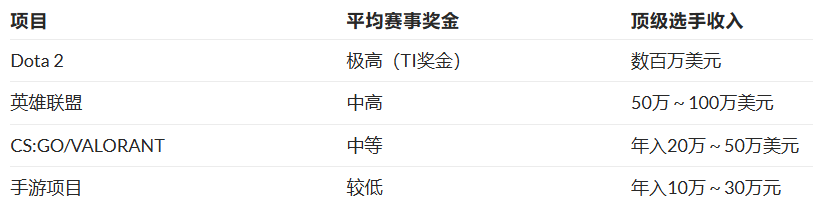 职业选手通常由电竞俱乐部签约,获取月薪或年薪。工资标准因项目、人气和战绩而异: